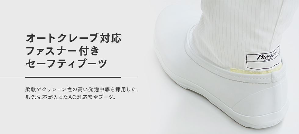 柔軟でクッション性の高い発泡中底を採用した、爪先先芯が入ったAC対応安全ブーツ