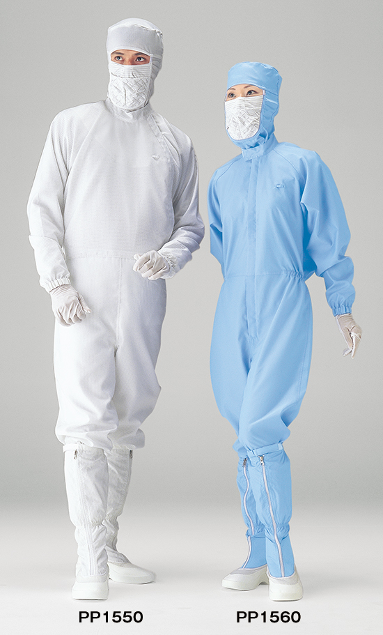 ※作業上、帯電による影響を及ぼすとされる上半身前身に重点をおいてプリータSEを配したコンポジット設計(前身頃上、袖、衿にプリータSE、その他の部位にプリータⅡを使用)。静電気対策と防塵性を重視しています。