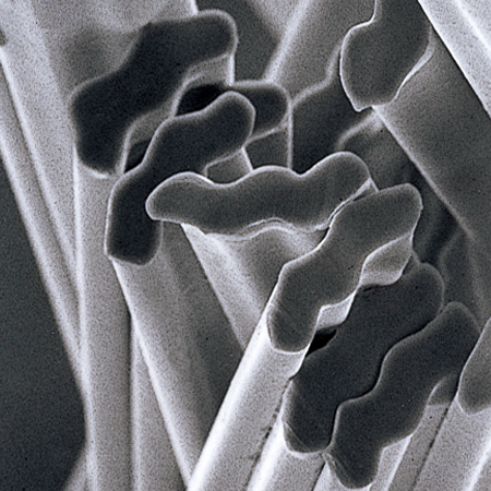 フレシール素材:吸汗速乾性に優れたW型断面繊維「テクノファイン」に、天然タンパク質セリシンを定着させる表面加工技術(フレシール加工)を採用。
