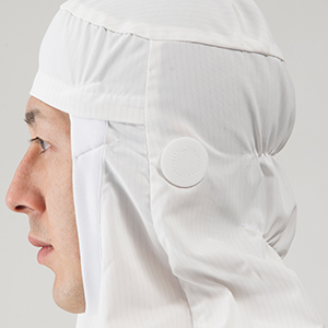 顔周りに2WAYストレッチ素材を配し、フィット性UP