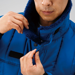 衿元は首に負担をかけずにしっかりと締められる仕様。放熱の大きな要因である煙突効果を軽減します