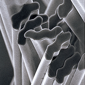 フレシール素材:吸汗速乾性に優れたW型断面繊維「テクノファイン」に、天然タンパク質セリシンを定着させる表面加工技術(フレシール加工)を採用。