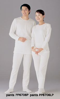 The double layering is effective in increasing the level of sterility and preventing dust from adhering to clothing. Using the knit made of autoclave-sterilizable Solotex as the material for the underwear reduces particle emissions from the body and clothing. In addition, the double layer enhances comfort. The double layer effect provides a great advantage for pharmaceutical fields.