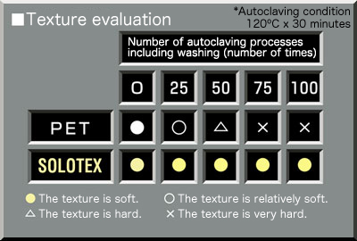 Solotex retains its soft texture even after being autoclave-sterilized 100 times.