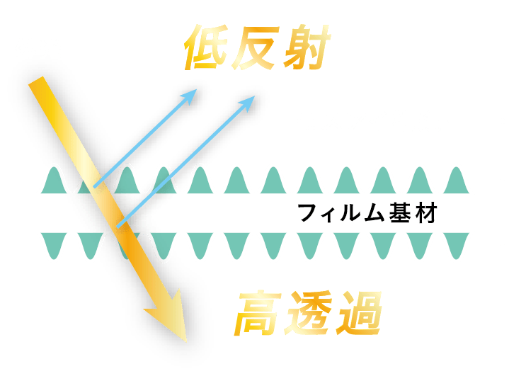 フィルム表面に微細な凹凸処理を施したモスアイ構造により、外光の屈折率を連続的に変化させ、表面反射率を低減。照明などの反射や映り込みによる視界の妨げも少なく、視認性に優れています。
